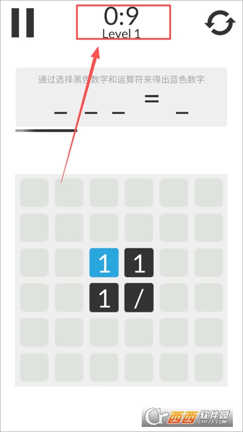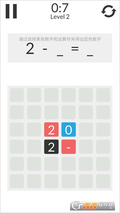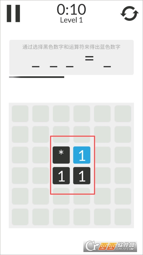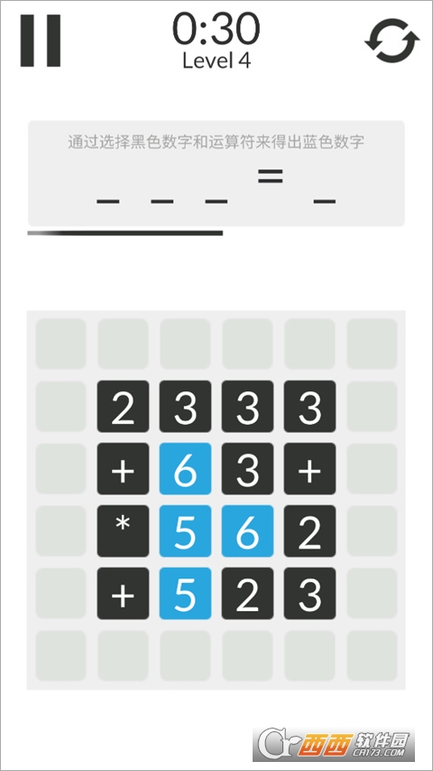 4、点击选择黑色数字和运算符形成计算式,当计算式的结果等于蓝色数字时,可进入下一关
