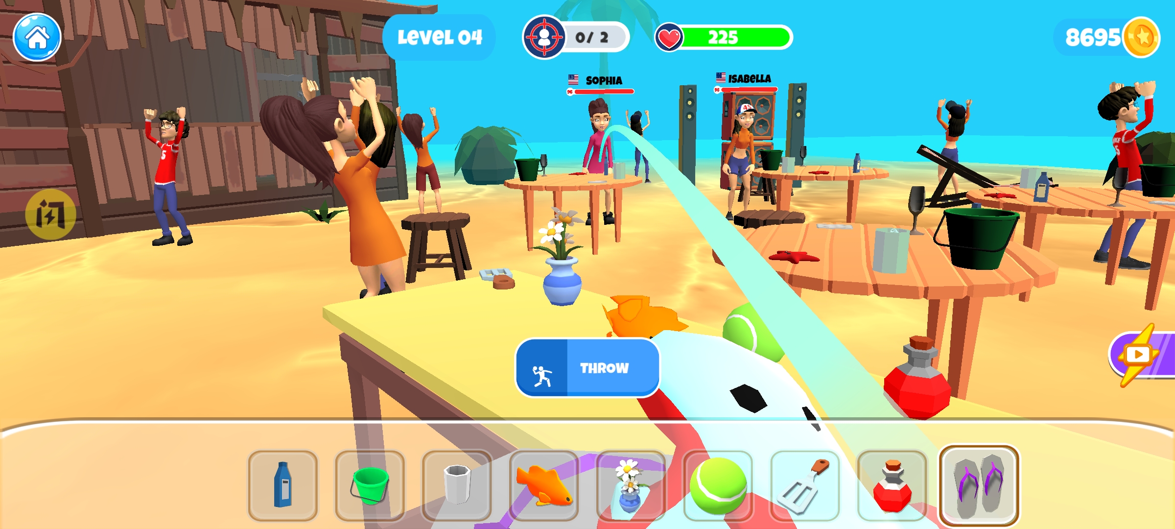 2、能精准瞄准投掷物品,尽情砸烂周围。