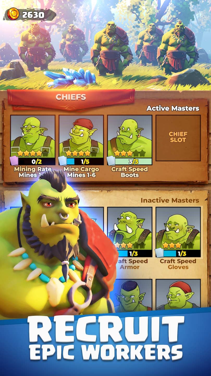 1,你需要招募各种能力的兽人矿工