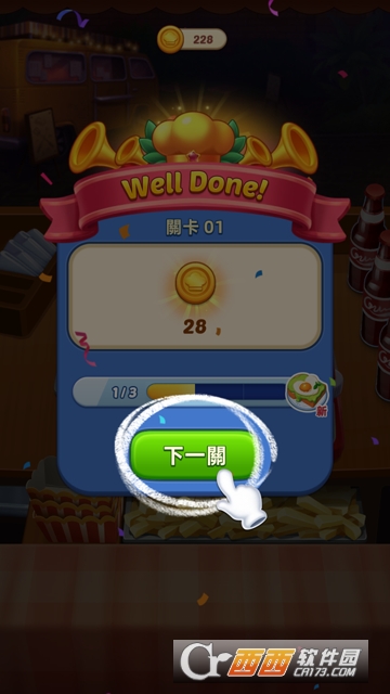 2、游戏以关卡推进,过关要求各异,需满足顾客味蕾成为大厨。