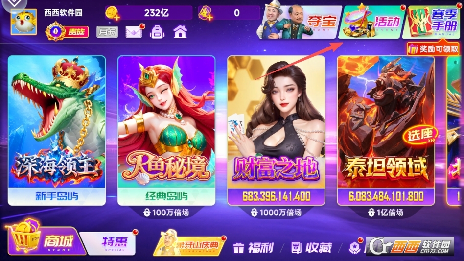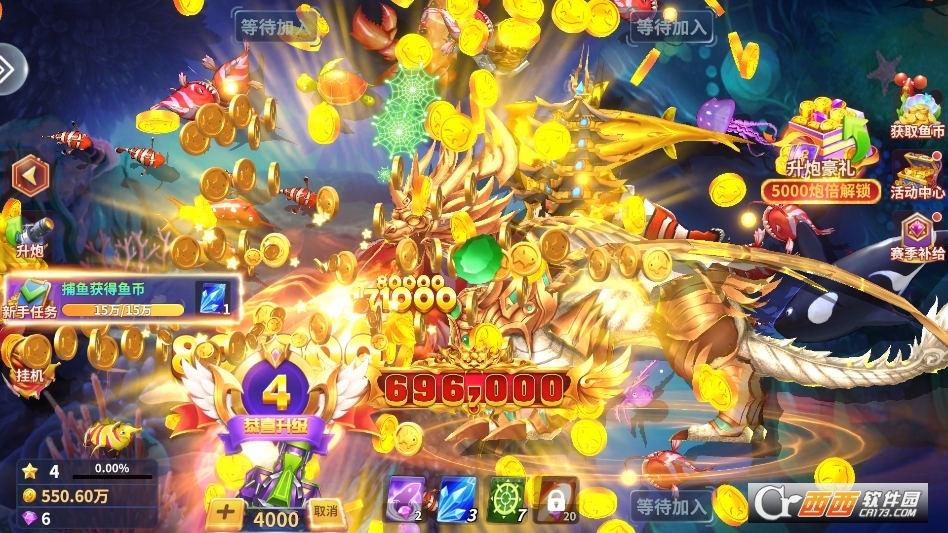 特殊鱼挑战模式,新增凶兽相柳、青蛙王子等特殊鱼种,捕获触发超变异倍率,最高可达数十万倍,收集特殊道具可解锁额外奖励,玩法新颖、惊喜不断。