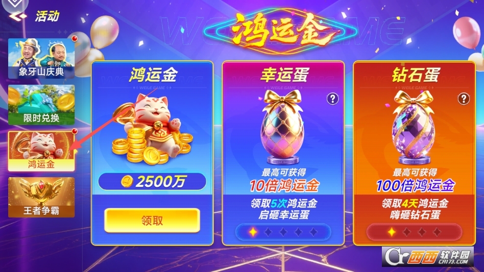 在里面找到鸿运金版块,即可领取到免费的金币