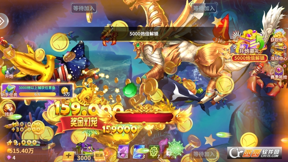 经典千炮自由捕鱼,炮台倍率自由调节,鱼群密集时用低倍炮以量取胜,BOSS出没时切换高倍炮冲击极限收益,灵活策略搭配,轻松掌控捕鱼节奏。