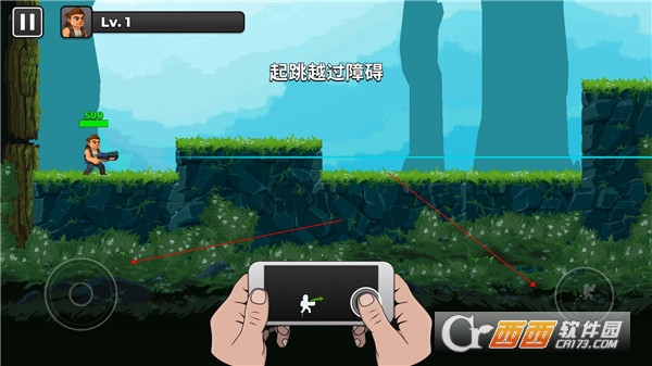 3、通过左手的滑动,右手向上操作人物往上跳。