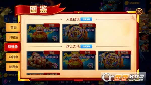 4、超酷神将收集,战力飙升:游戏中可以收集各种神将,每个神将拥有独特的技能和外观。召唤神将助战,不仅特效炫酷,还能大幅提升你的捕鱼效率。