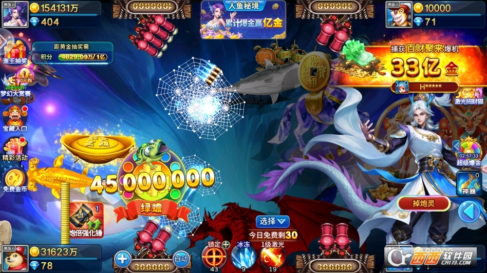 1. 新手登录礼:首次登录游戏,即可直接领取新手大礼包,包含10000+初始金币、1级基础炮台(可快速升级)、冰冻道具*5、追踪道具*5.无需完成任何任务,登录即领,助力新手快速开启捕鱼,解决初期金币不足、道具匮乏的问题。