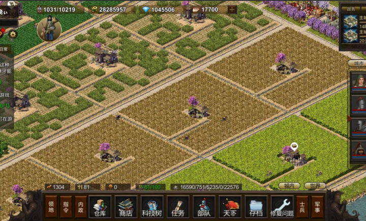 2、集合策略、城市建造与休闲种田等玩法,可自由发展建造城池。
