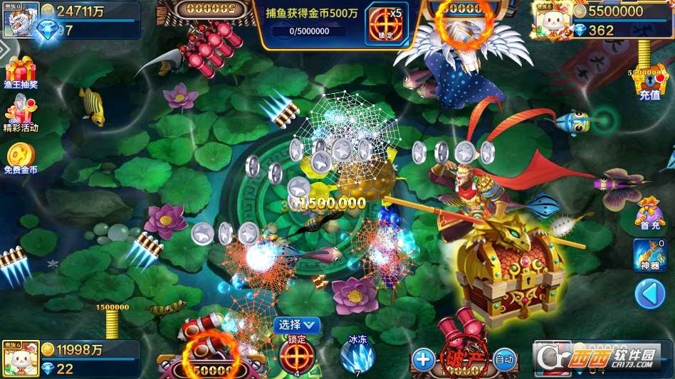 游戏支持单人休闲捕鱼与多人联机PK两种模式,玩家可自由选择渔场,热门渔场适合竞技比拼,普通渔场适合新手稳步发育。内置金蟾、龙王、深海巨鲨等专属BOSS,每个BOSS拥有独特技能与弱点,击败后奖励翻倍,组队挑战还能共享高额收益。