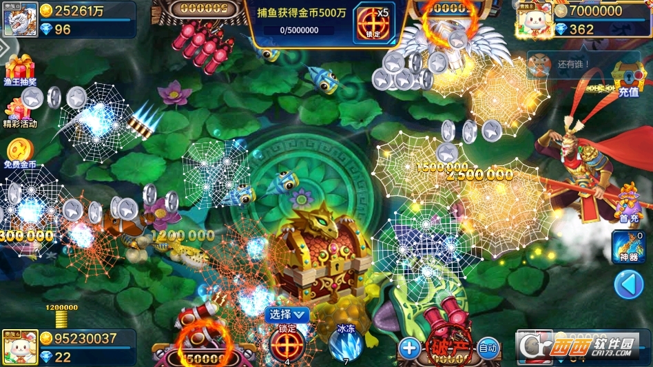 游戏内BOSS分为金蟾BOSS、龙王BOSS、深海巨鲨等十余种,各有专属技能与弱点。金蟾BOSS会定期吐出金币雨,弱点集中在腹部,攻击此处命中率更高;龙王BOSS会召唤闪电干扰炮台,弱点在头部与鱼鳍,需避开闪电攻击精准打击;深海巨鲨游动速度快,弱点在鳃部,需预判移动轨迹提前瞄准。