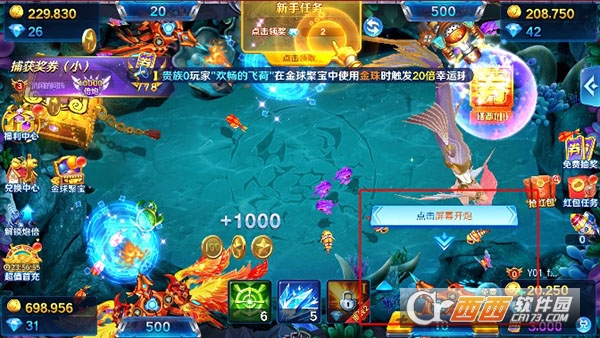 2、选择一个渔场进入,玩家需点击屏幕进行捕鱼;