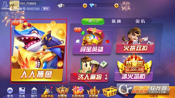 1、打开人人捕鱼官方正版,手机号注册登录后进入游戏;