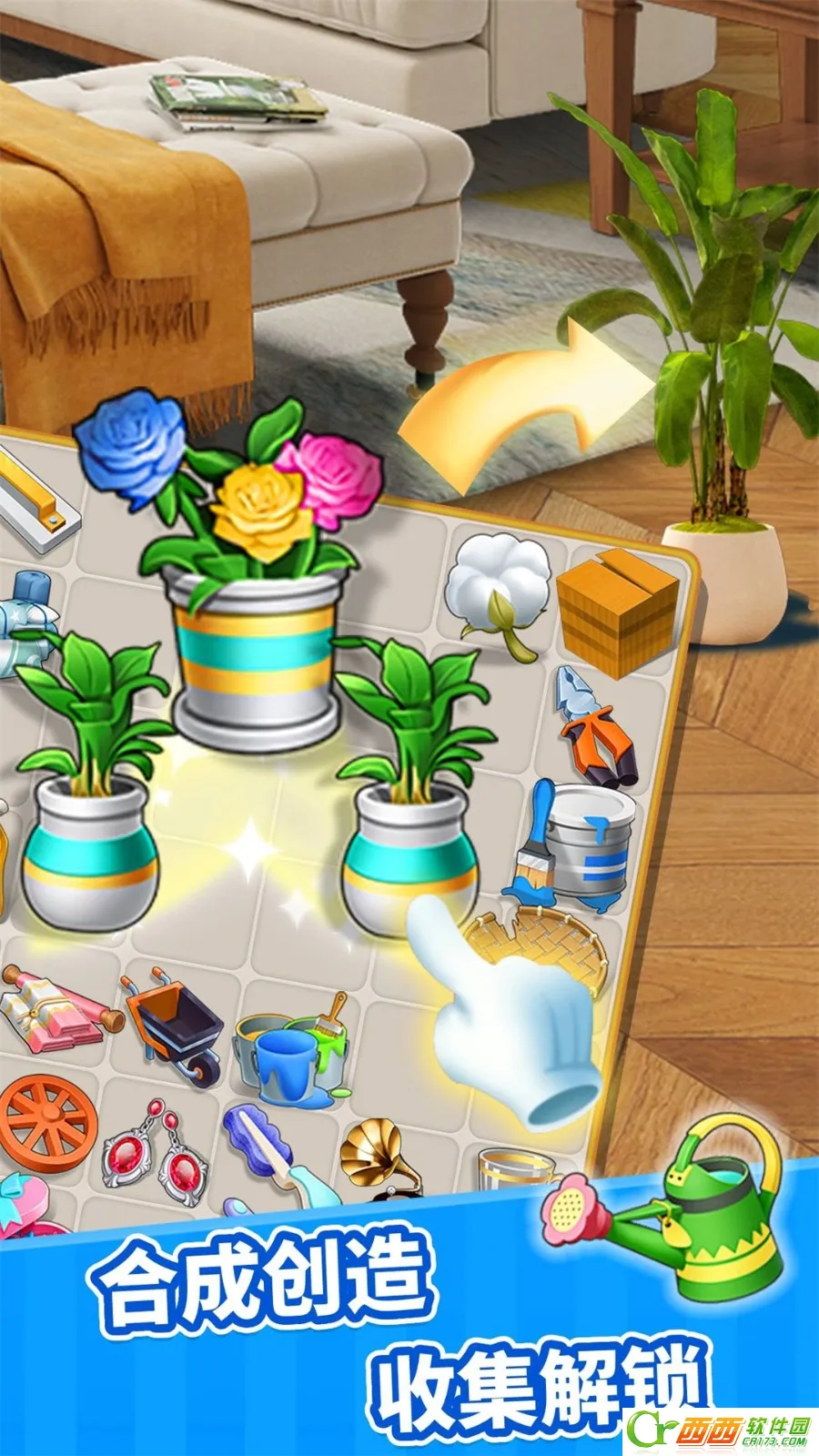 2. 自由装饰:玩家可扮演设计师凯洛琳,帮助好友装修房子,动动手指合成材料,自由发挥创意进行装饰。
