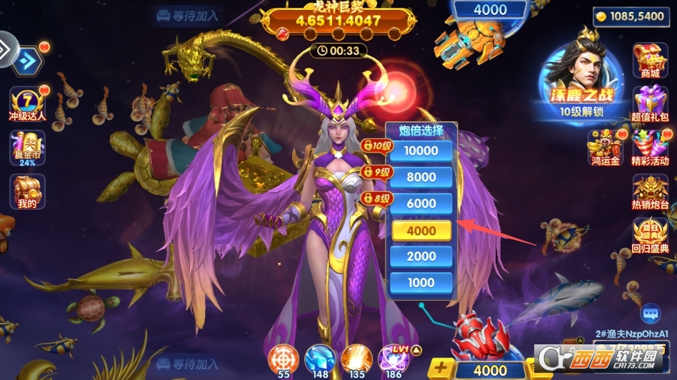 答:在游戏主界面可直接切换炮台倍率,从低倍到高倍自由选择;通过捕获鱼类、完成任务、参与活动积累资源,可升级炮台等级,解锁更高倍率与专属技能,提升捕鱼效率。