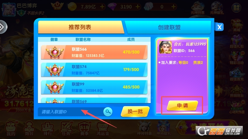 打开搜索你想要加入的公会然后申请即可