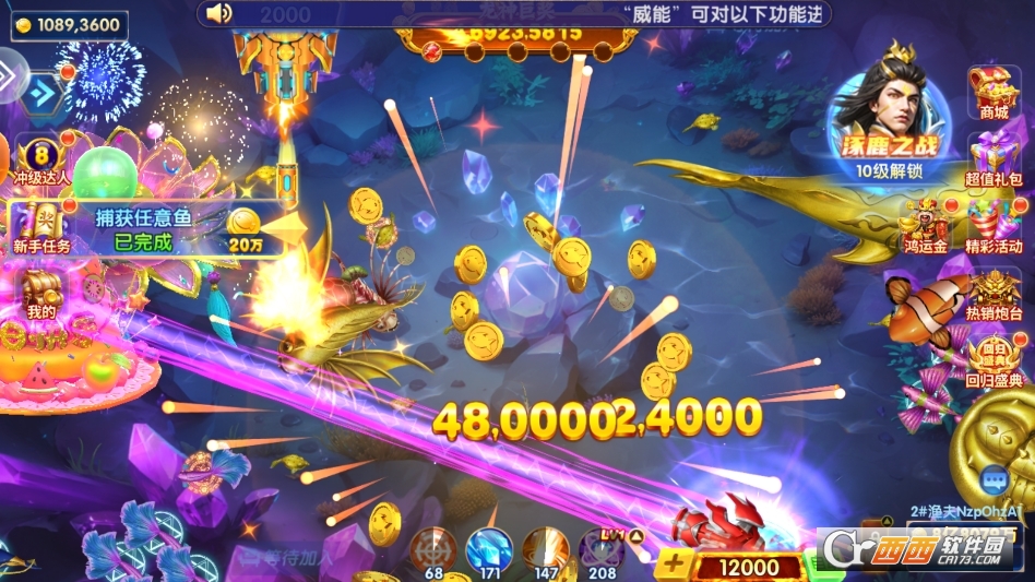 2. 炮台倍率升级玩法:玩家可通过消耗金币提升炮台倍率,倍率从基础倍数逐步升级至千倍、万倍甚至更高,倍率越高,炮弹威力越强,捕获高倍鱼类与BOSS的概率越高,获得的金币奖励也越丰厚。同时解锁高倍率炮台后,可解锁专属技能与外观,搭配炮翅皮肤,既能提升捕鱼效率,又能打造专属视觉效果,彰显玩家实力,适配不同玩家的捕鱼策略需求。