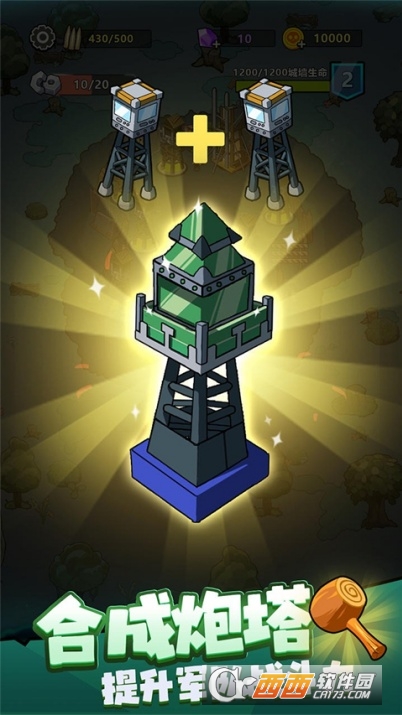 1. 放置合成塔防:滑动合成同等级防御塔,提升品质与战力,抵御僵尸进攻。游戏全程依靠指尖滑动完成塔阶升级,无需复杂操作,随着波次推进,僵尸数量和强度会大幅提升,只有不断合成高阶炮台,才能守住源源不断的尸潮,坚守更长天数。