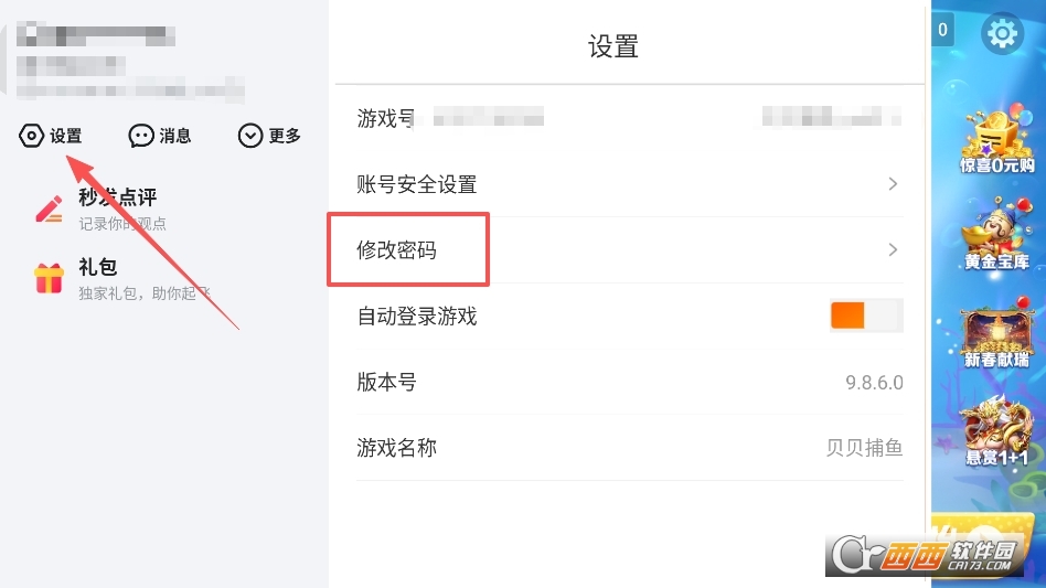 贝贝捕鱼在哪修改密码