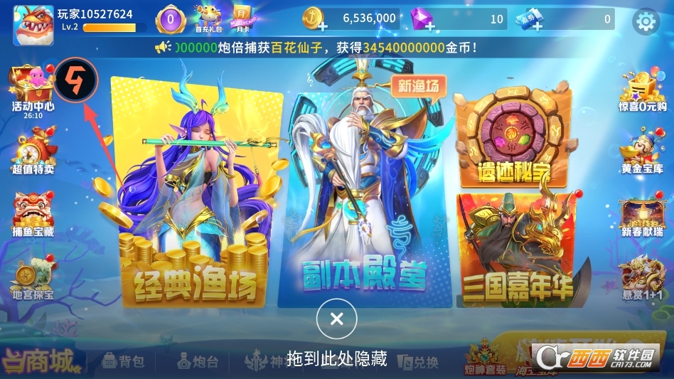 5. 渔场解锁玩法:游戏包含浅海渔场、深海秘境、副本殿堂等多种特色场景,每个场景都有专属鱼类、BOSS与奖励机制,玩家可使用金币解锁高阶渔场,高阶渔场鱼类倍率更高、BOSS奖励更丰厚,解锁过程极具成就感。