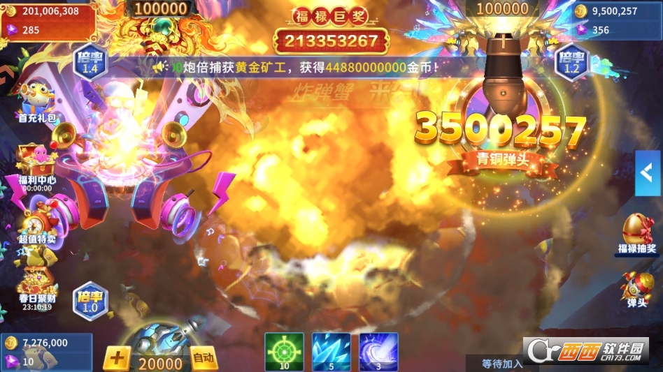 3. 酷炫技能视觉拉满:拥有多种炫酷技能与全屏爆金特效,炮弹命中鱼类、触发技能时,会呈现绚丽的粒子效果与金币雨动画,视觉冲击强烈,每一次捕获都能带来满满的成就感与爽感,沉浸式体验拉满。