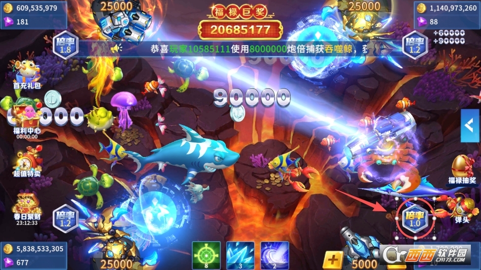 在渔场中我们找到自己炮台旁边的倍率按钮并点击