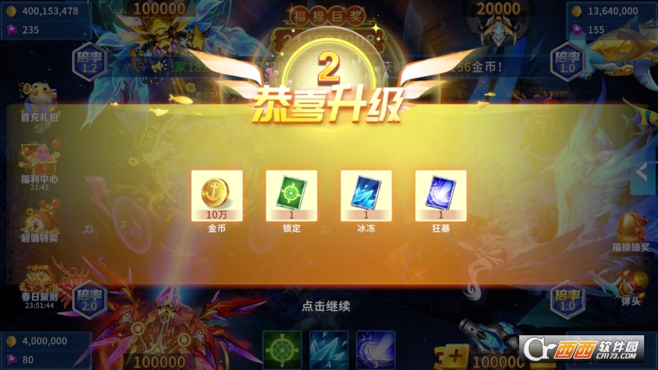 2. 副本解锁玩法:核心特色玩法之一,玩家累计一定金币、道具或捕获量后,即可解锁专属副本,副本分为普通副本与精英副本,普通副本适合新手积累资源,精英副本有强力BOSS与高额奖励,击败副本BOSS可获得稀有道具、高倍金币,甚至解锁限定炮台皮肤,副本玩法兼具挑战性与收益性,打破传统捕鱼的单一性。