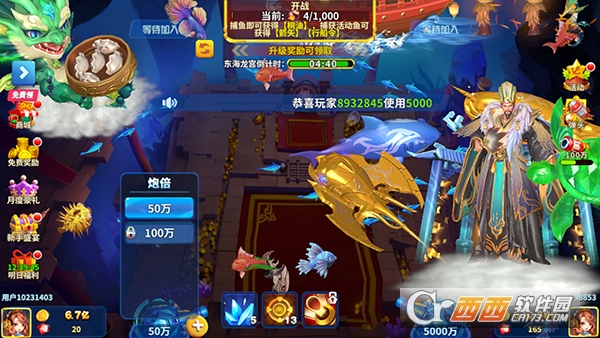 炮台是游戏里最重要的道具,相对来说捕鱼时使用的倍率也是相当重要的,那么在进行游戏的时候,我们要学会根据不同的鱼类、BOSS来选择不同的炮倍。比如在刚进入渔场的时候,BOSS如果还没出现,我们可以切换成低倍炮,捕抓小鱼热热身,节省金币,等待BOSS出现之后,再切换成高倍,实现捕鱼奖励最大化,从而在游戏中获得更多的金币。
