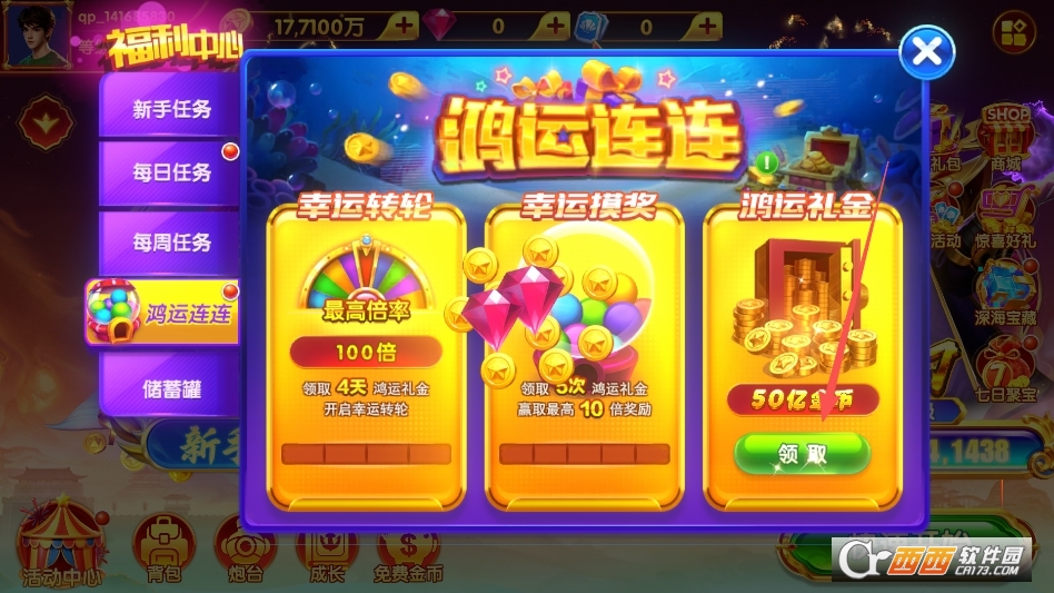 即可在活动页面领取鸿运金