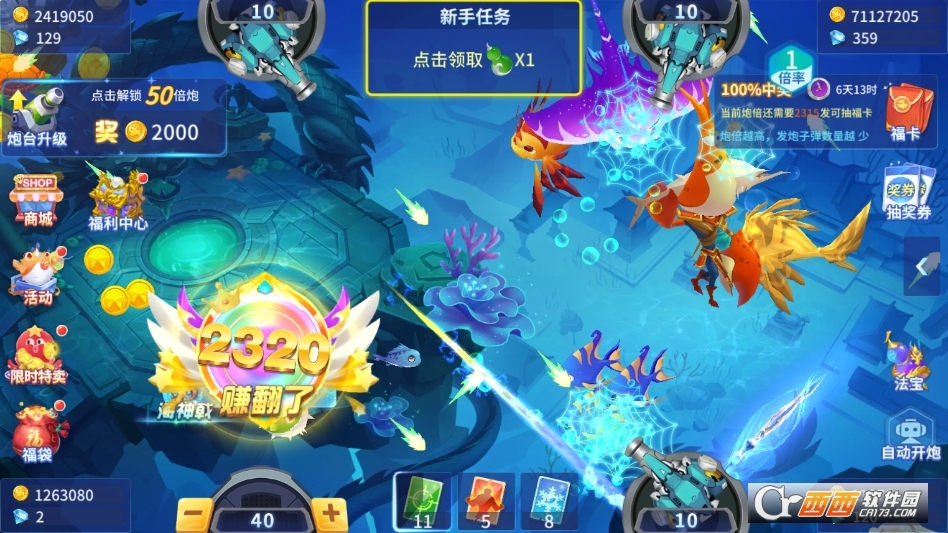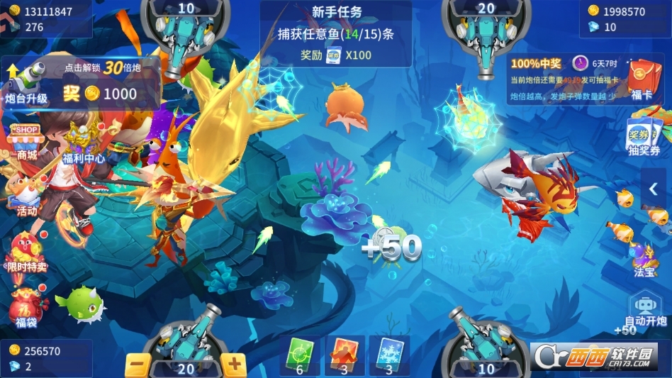 深海场景制作精致,鱼群动态逼真,炮弹特效炫酷,视觉与打击感双重升级。