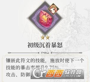 1、沉着暴怒符文:初级是紫色品质,中级是橙色,但效果一样,都是提升下一个技能的暴击几率。符文的重点效果还是在能够为后一个技能增加比较高的暴击率。那么以勇士队的核心输出精灵公主葛莱蒂丝(自动技能释放顺序为3-2-1-1-1-奥义)为例,其本身就是一个享受勇士阵容暴击伤害暴击率加成的角色,那么我们将这个符文镶嵌在1技能上,不但能享受多次1技能加暴击的效果,自动战斗时大招也仍然能够享受加成。
