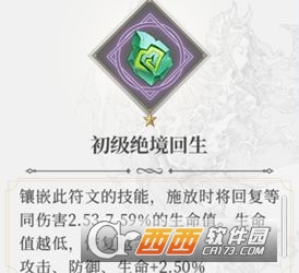 5、绝境回生符文:初级为紫色,中级为橙色。生命值越低,恢复越多。这个符文放在任何伤害阵容都能增加生存概率,狂战的特性和这个符文也非常的契合,很适合PVP时使用。