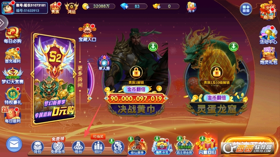 我们需要回到游戏的主界面,然后点击下方的炮台选项