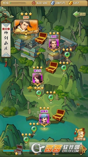 3、侠客收集与养成:收录百余名江湖名宿,从隐世高人到少年英侠,均可招募入队,通过培养提升战力与缘分羁绊。