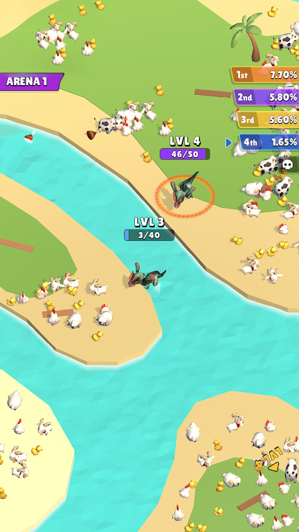 1. 多样化恐龙角色与成长机制:玩家能选择不同恐龙角色,各有独特特点和能力。从弱小的小恐龙开始,不断猎食提升等级,逐渐进化为更强大形态,生命值和攻击力增强,让游戏过程张力十足,每场对决精彩纷呈。