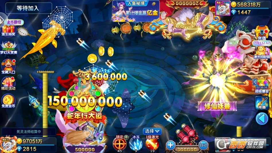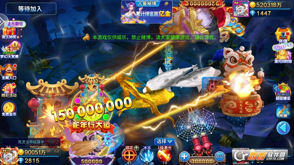 其次,捕鱼场多样,选择自由随心。游戏设置多种不同难度、不同风格的捕鱼场,从适合新手的低倍率新手场,到适合高手挑战的高倍率高级场,还有特色主题渔场可供选择,玩家可根据自己的捕鱼水平、喜好自由切换,避免玩法单一带来的枯燥感,每次登录都能有新体验。