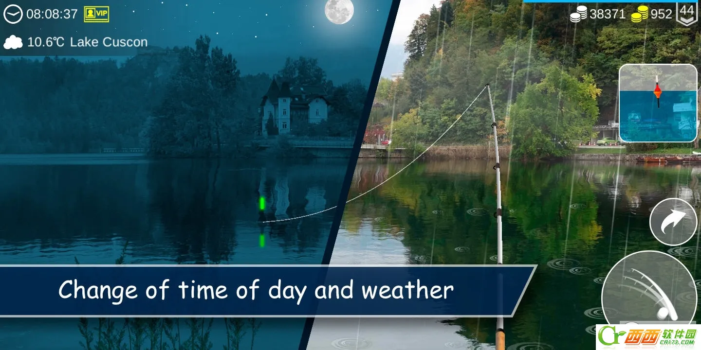 游戏画面真实,还会随时间变幻天气,让玩家真切感受钓鱼时时间的流逝,仿佛置身真实钓鱼场景。