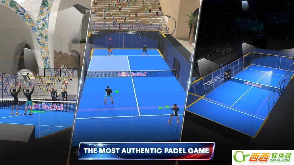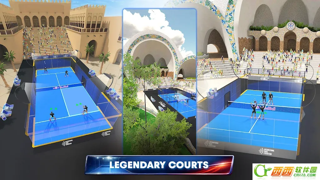 2.全球最真实的帕德尔场地重现红牛板式网球:球场传奇采用了先进的物理引擎模拟,完美还原了球与球场墙壁的互动效果,带来难以置信的真实击球反馈。游戏中的所有场地均基于PremierPadel巡回赛的官方赛场打造,细节刻画极为精致,从球场的地面纹理到外围的观众席,每一个细节都体现出高度的专业水准。玩家可以在世界各地的著名帕德尔球场上挥洒汗水,感受职业级竞赛的紧张氛围。