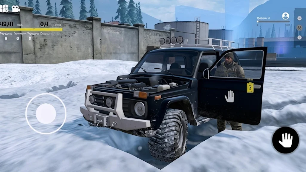 -真实驾驶舱视角和互动机制:以第一人称视角深入驾驶舱,让玩家真实感受严寒条件下的操作体验。游戏支持随时下车,玩家可以走出车外对车辆和周边地形进行详细观察,规划前进路线,甚至亲自操作绞盘设备助力脱困。