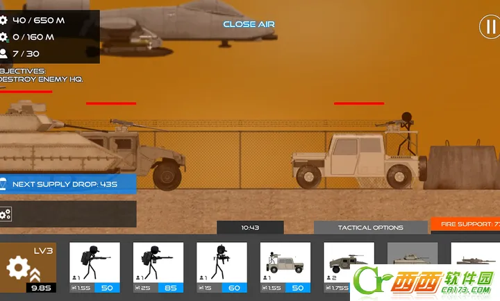 3. 战斗需灵活采用战略,面对敌方火柴人军队和僵尸威胁,任务多样。