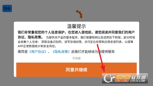 1、首先打开游戏,阅读并同意《用户协议》和《隐私政策》;