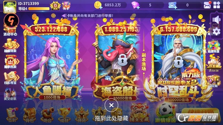 其次,玩法丰富不单调,除了基础的捕鱼玩法,捕鱼房、活动房、神话场等特色玩法各有亮点,捕鱼房主打稳定收益,活动房有专属福利加成,神话场则有稀有BOSS与高额奖励,避免长期游玩的枯燥感。
