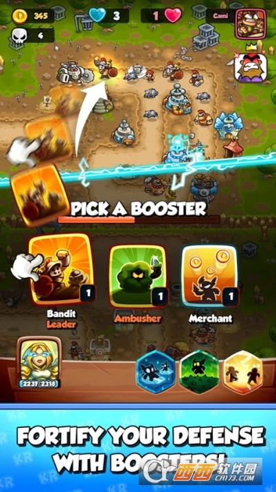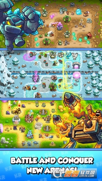 王国保卫战战略对决安卓中文版是一款非常经典的塔防手游,本作支持多人联机同屏游玩 ,你需要在游戏中指挥你的传奇英雄单位,建造兵营,炮塔,地刺等防御陷阱 ,训练士兵,骑兵,女巫等特殊兵种,抵御如潮水般进攻的敌人。每波消灭都能选择随机的强化能力来增强你的实力,不断升级挑战最终boss。