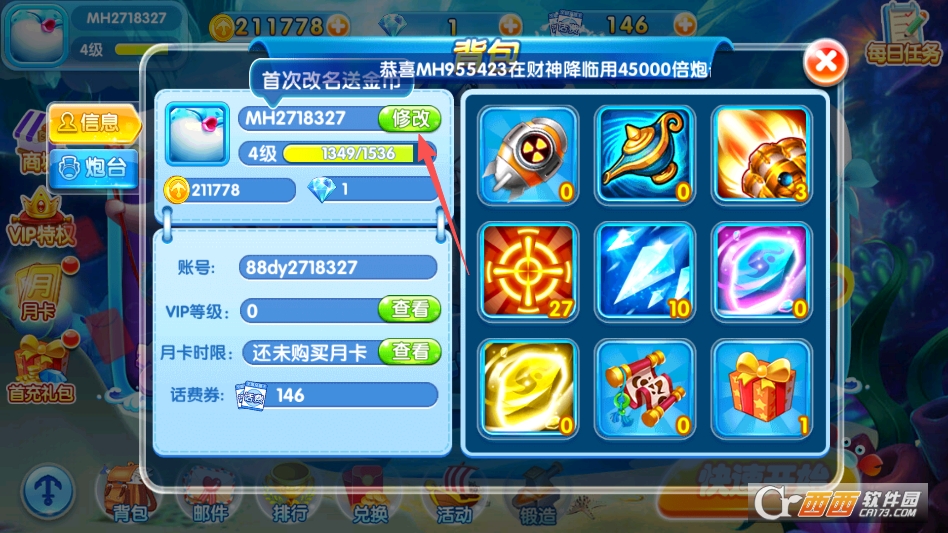 捕鱼大玩家怎么修改名称