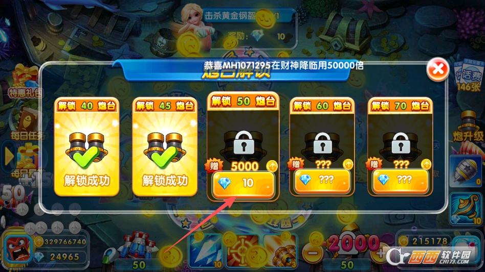 你还可以直接花费钻石来提前解锁更高等级的炮台倍数