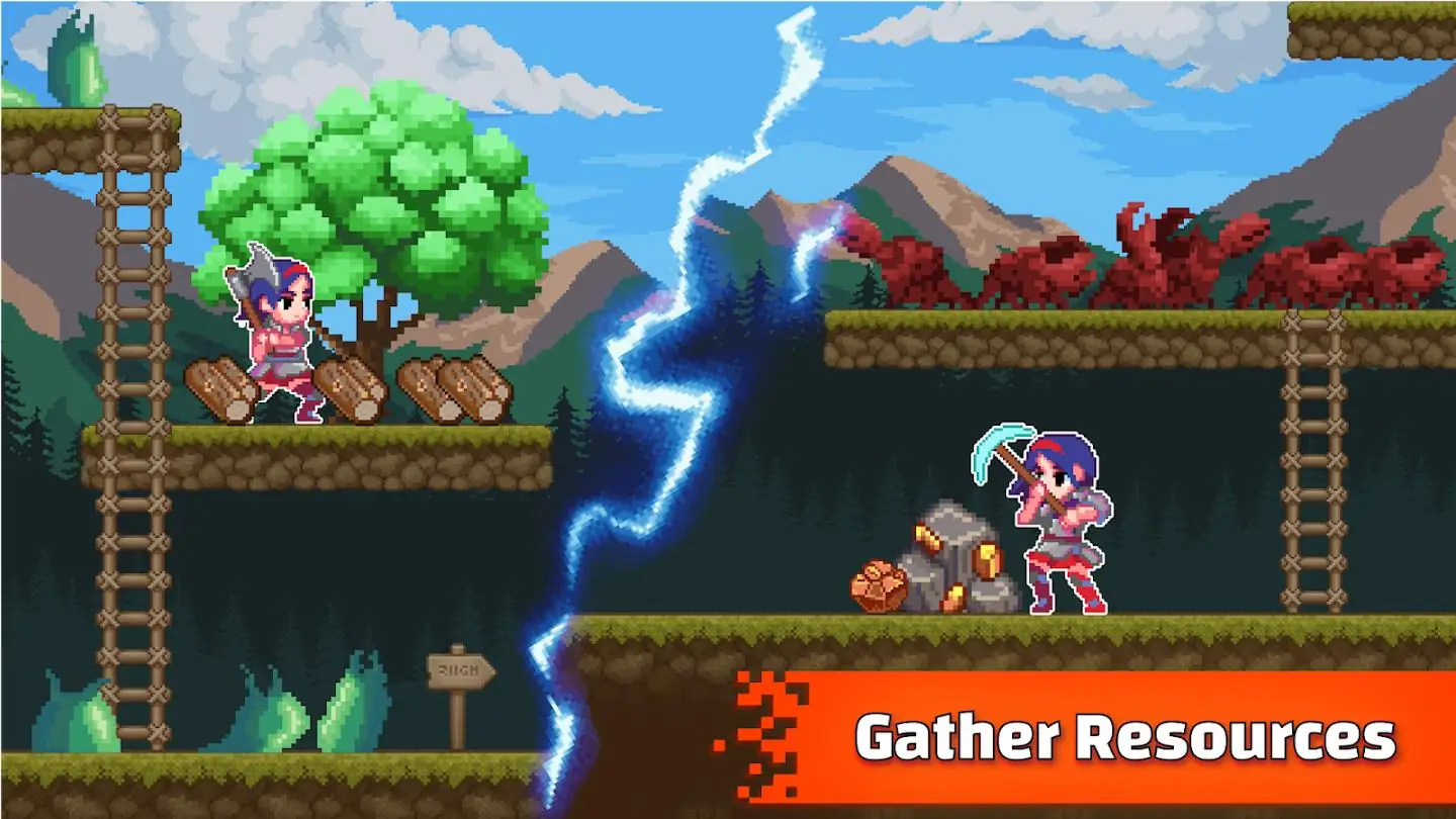 2、打造和自定义英雄,通过采矿、砍伐、探索等获取资源打造武器库。