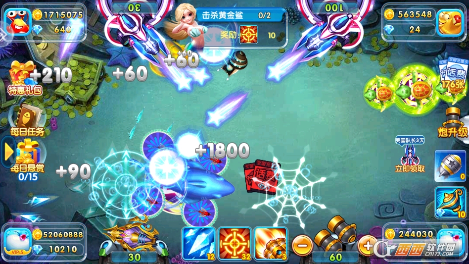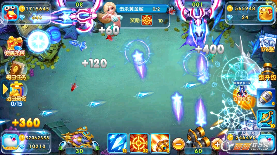 画面与音效:满分级视听盛宴最新版3D画质全面升级,海底场景光影绚丽、珊瑚逼真、水纹动态自然。金龙、白鲸等新鱼类建模精细,动作流畅,外观极具辨识度。捕鱼特效炸裂,激光、冰冻、爆金等效果炫目,打击感强烈,视觉冲击力拉满。搭配3D环绕深海音效,海浪、鱼鸣、炮击声层次分明,沉浸式体验拉满。多数玩家评价:“画面是捕鱼手游天花板,每帧都像看动画大片”。