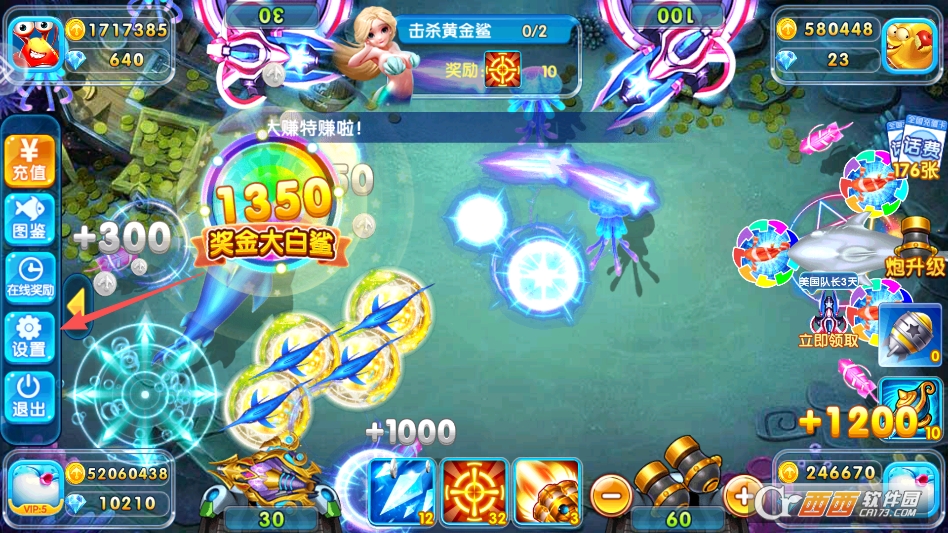 金币与炮台倍率管理开炮消耗金币,金币不足无法游戏,破产后每日可领多次救济金。新手前期优先使用低倍率炮台(10-50倍),稳扎稳打积累基础金币。遇到鱼潮或高价值鱼群时,再适度切换中高倍率,避免盲目高炮导致快速破产。高倍率虽收益高,但消耗巨大,务必根据自身金币储量合理控制。