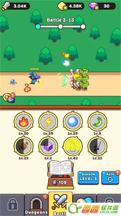 4. 深入地下城探险,挑战强敌获取大量资源和珍贵材料,用于升级魔法书、强化魔法槽等,即使离线也能积累资源。