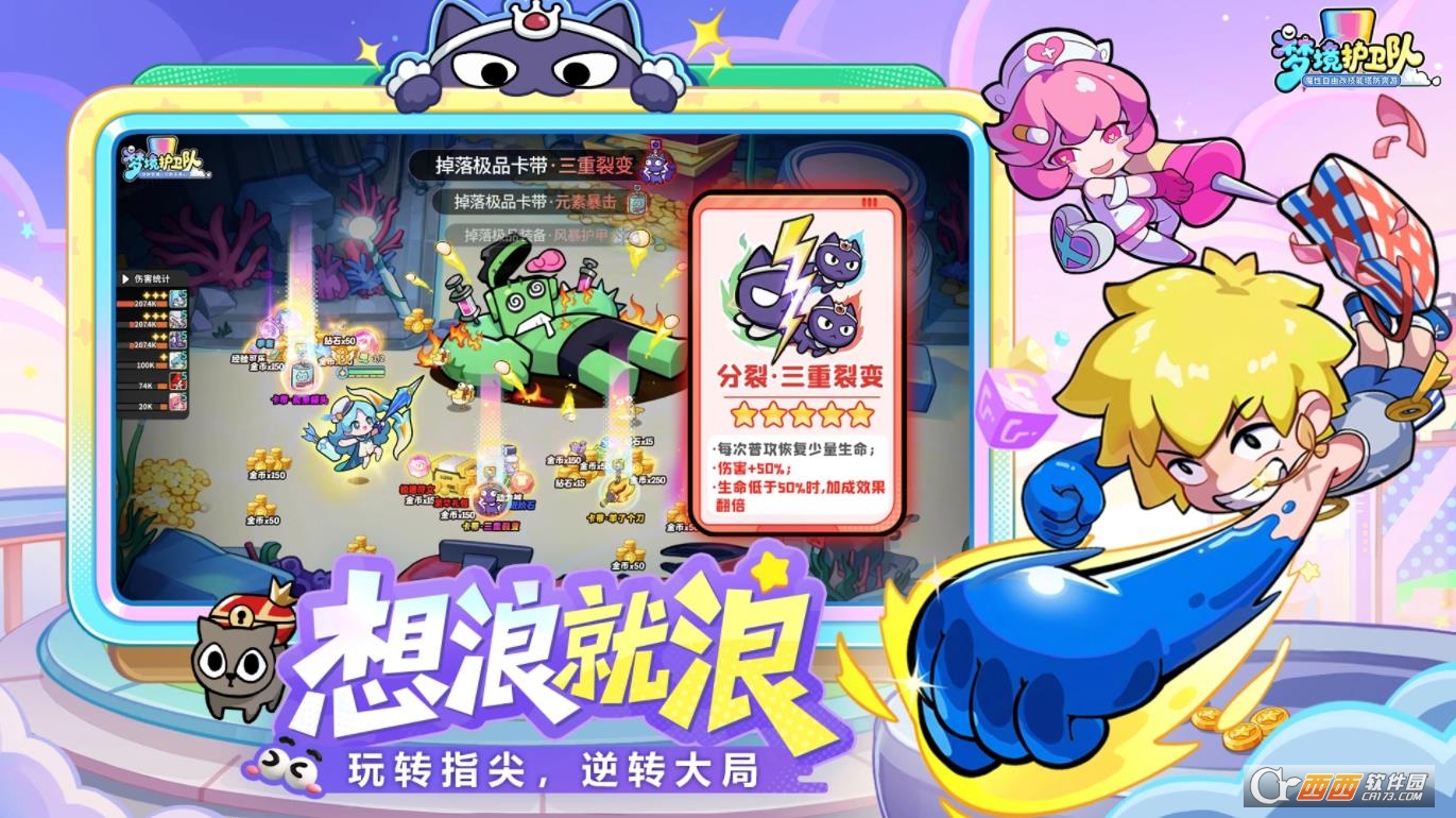 《梦境护卫队》是一款Q版肉鸽塔防手游,兼顾策略性与解压感,适配各类玩家碎片时间畅玩。游戏采用经典肉鸽塔防玩法,玩家可召唤梦灵组建阵容,前排抗伤、中排辅助、后排输出合理搭配,自动战斗抵御梦魇入侵,无需复杂操作,清完所有波次即可通关。战斗中升级可解锁三选一强化,叠加祝福效果,轻松搭配攻速流、暴击流等多种流派,趣味十足。