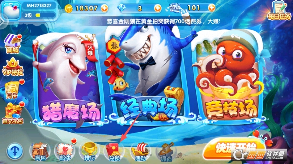 进入游戏点击主界面下方的兑换按钮