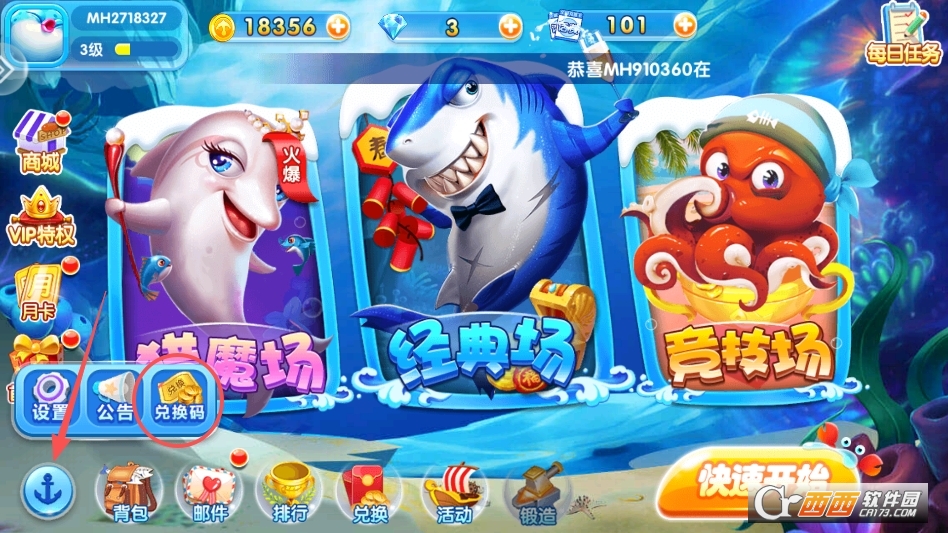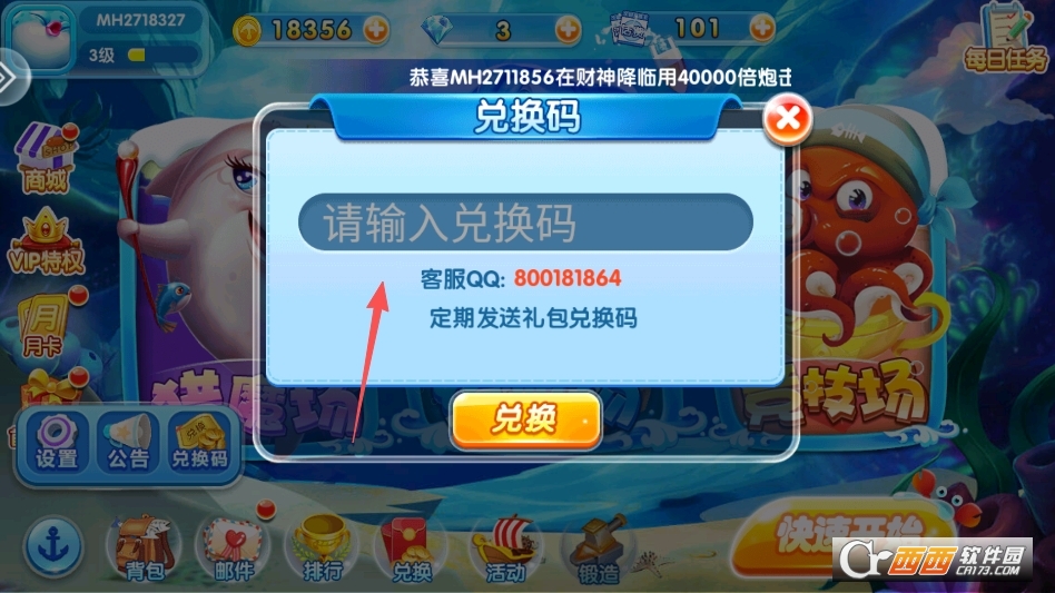 进入游戏点击主界面左下角按钮找到兑换码选项